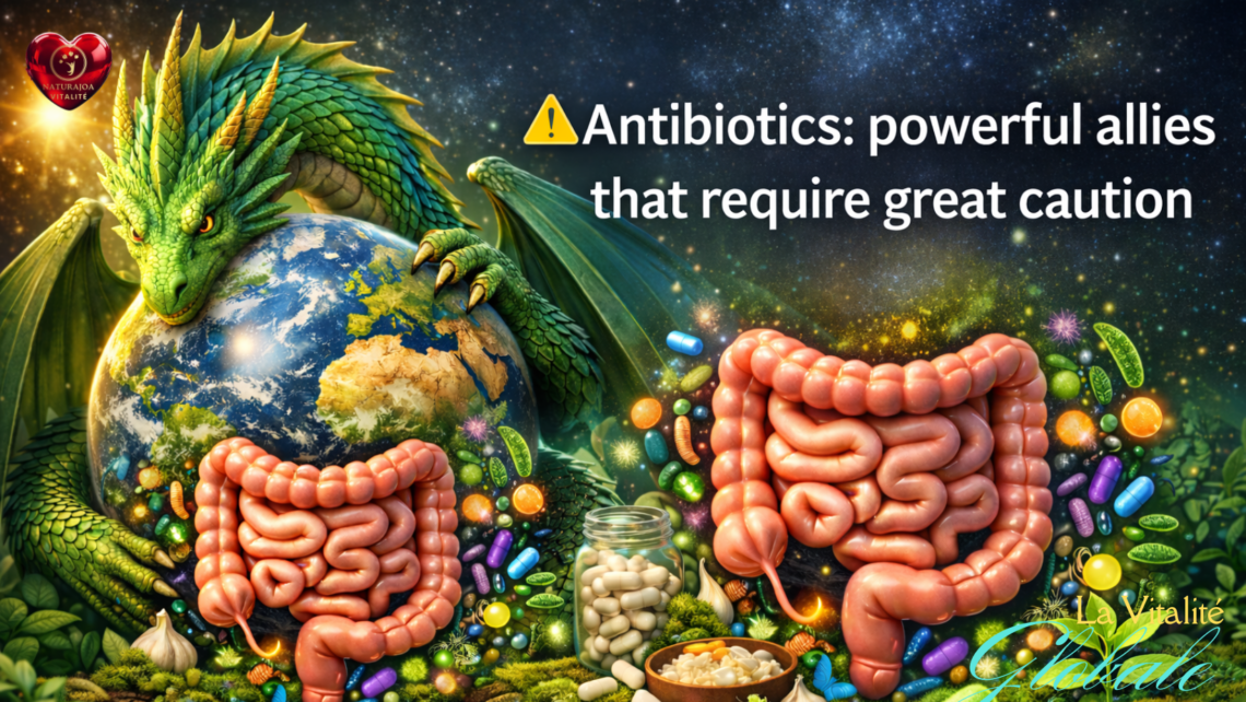 🌿 Antibiotics and Intestinal Rebirth: When Living Foods Repair Life. 🌱 Listening to the Wisdom of the Microbiome: Nourishing Healing with Living Foods. 🌍 FR — La santé n’est pas seulement l’absence de maladie, c’est une dynamique de vitalité Dans l’approche Naturajoa Vitalité, la santé ne se résume pas à “faire disparaître un symptôme”. Elle se construit dans la durée, dans la capacité du corps à se régénérer, à retrouver son énergie, sa joie, sa clarté mentale et son élan de vie. Au cœur de cette dynamique se trouve un organe longtemps sous-estimé : 👉 notre microbiote intestinal, cet écosystème vivant composé de milliards de micro-organismes qui travaillent…